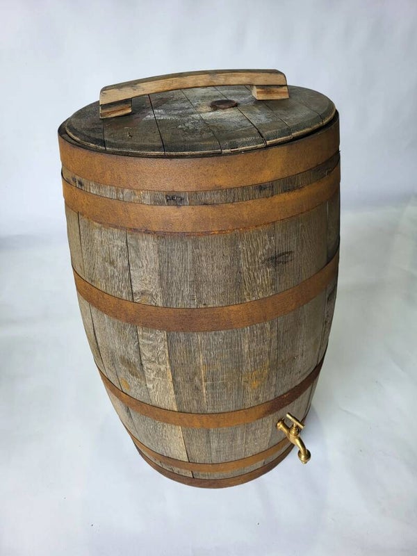 Ontdek onze prachtige eikenhouten regentonnen, vervaardigd van oude whiskyvaten met een inhoud van 190 liter. Elke ton wordt geleverd met een messingkraan en een afneembare deksel voor gemakkelijke toegang tot het opgevangen water. Deze tonnen zijn robuust en geborsteld, waardoor ze een authentieke uitstraling hebben.
