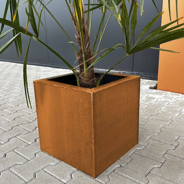 Deze vierkante cortenstalen tuinbakken geven je tuin een strakke, moderne en industriële uitstraling. Het cortenstaal ontwikkelt na verloop van tijd een roestige patina, wat een uniek, natuurlijk karakter toevoegt. Ze zijn extreem duurzaam en weerbestendig, perfect voor het planten van bomen, planten, kruiden, groenten of bloemen. Verkrijgbaar in verschillende maten: Magma Cortenstalen plantenbak vierkant.